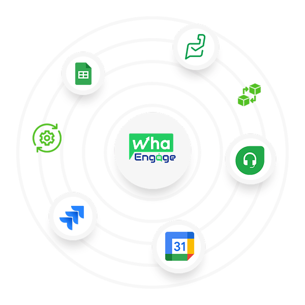 Seamlessly connect your customer service and ticketing applications like Google Sheets, Google Calendar, Jira Service Desk, Zoho Desk, Freshdesk, and more using Wha Engage's powerful API solutions. Effortlessly transform WhatsApp communications into helpdesk or service desk tickets, and optimize interactions by connecting Jira and other platforms. Partner with us to ensure your business utilizes the best messenger channel integration for top-tier customer support and satisfaction!